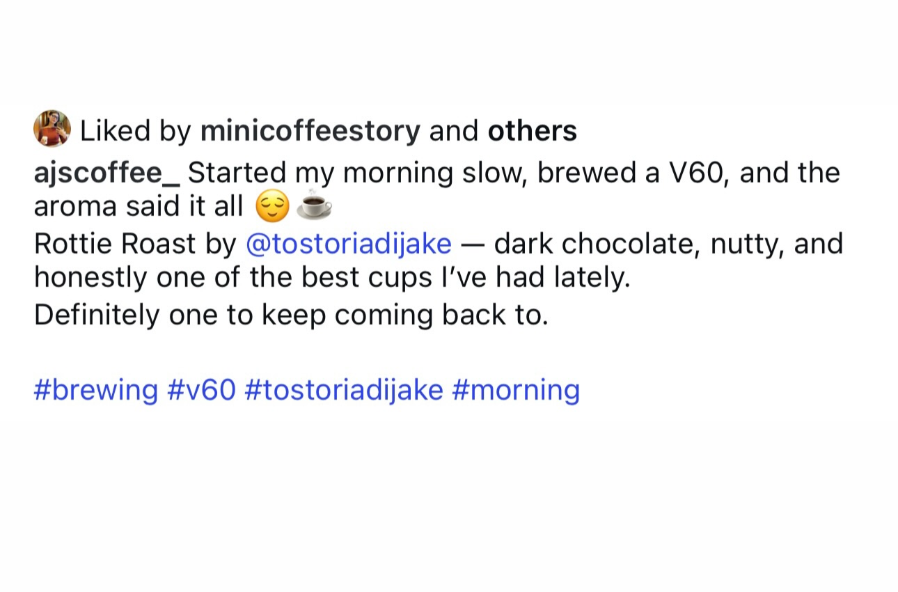 Don't take our word for it. Here's what customers think about their coffee experience with Tostoria di Jake.